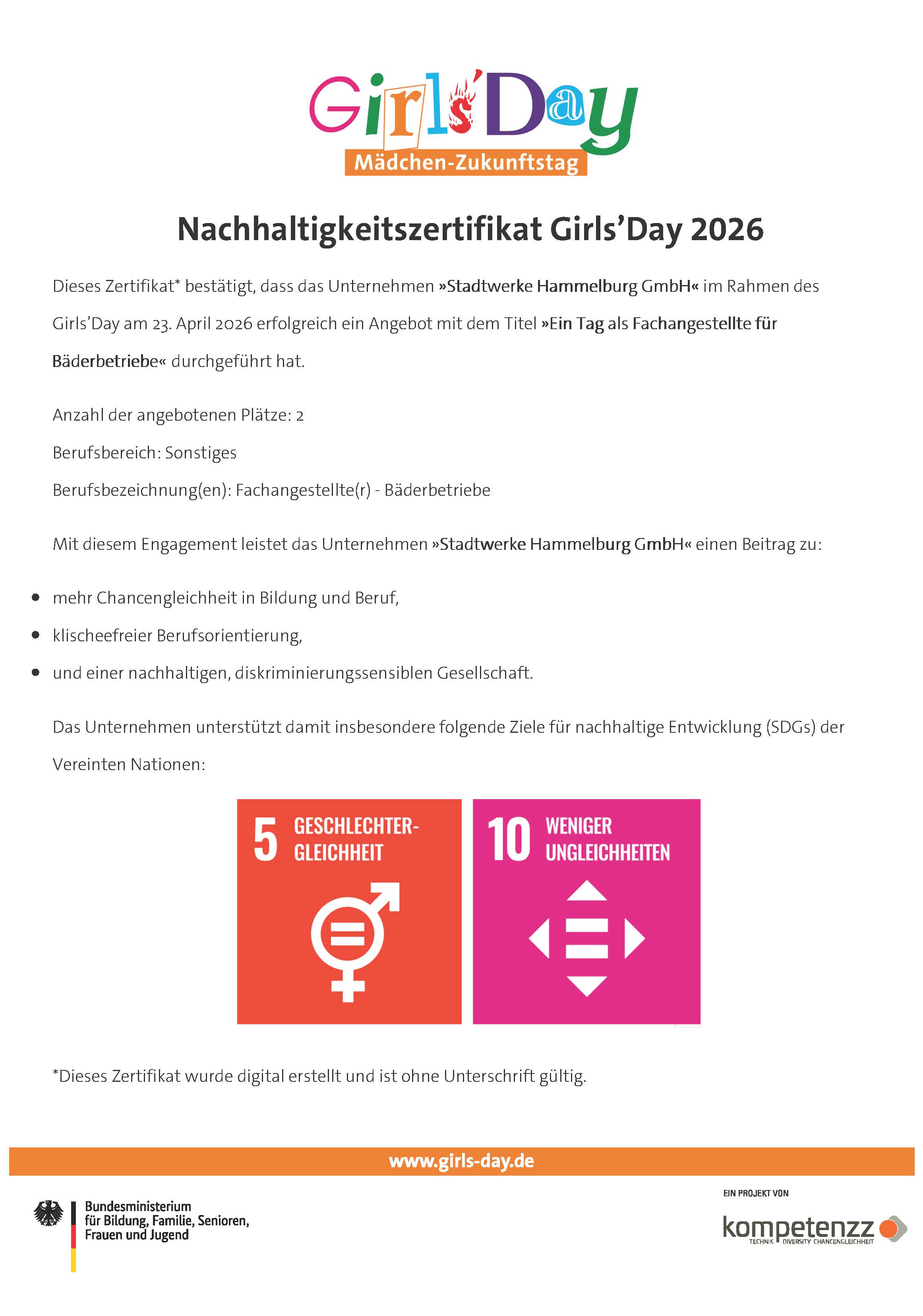 Der Girls’Day im Schwimmbad zeigte eindrucksvoll, wie vielseitig, technisch anspruchsvoll und gleichzeitig sozial der Beruf der Fachangestellten für Bäderbetriebe ist. Viele der Schülerinnen nahmen neue Eindrücke mit – und vielleicht sogar die Idee, diesen Beruf später selbst zu ergreifen.